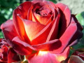 Высота – 0,6-0,8 м. Цветет непрерывно (VI-X). На одном стебле формируется целый букет из 3-5 бутонов. Аромат едва уловим. Практически полное отсутствие шипов.