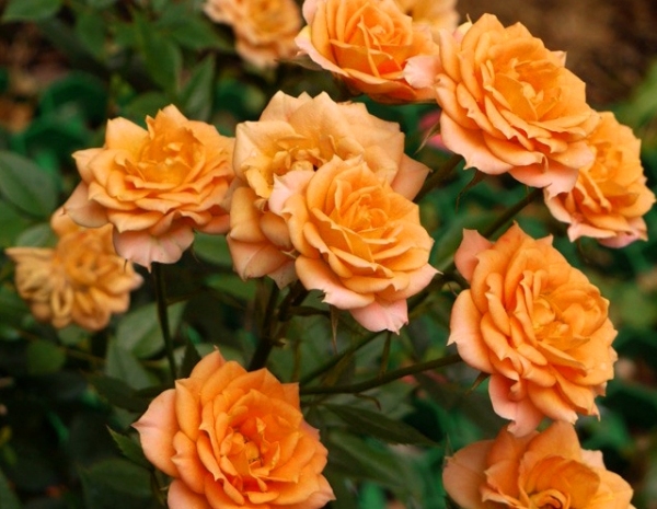 Высота до 0,6 м; цветы диаметром 4-7 см; нежно абриково-оранжевого цвета, цветение повторное, аромат легкий.