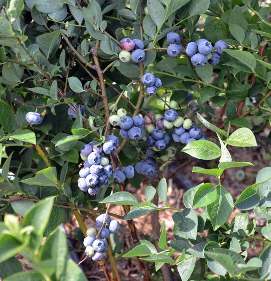 Голубика Блю Голд – сорт устойчив к болезням, вредителям и морозам (-34 °С), высотой 1,2 м. Ягоды крупные, диаметром 1,5-1,7 см и массой до 2 г, собраны в кисти, созревают с середины июля. Мякоть голубики Блю Голд плотная, ароматная, кисло-сладкая. Урожайность с одного взрослого куста – до 10 кг.