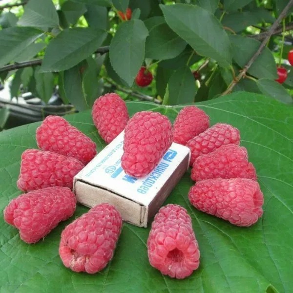 Плоды среднего размера весом 5-7 граммов. Отрываются легко, но не осыпаются при перезревании. Мякоть плотная, упругая. Окраска ягод от светло-красной до ярко-оранжевой. Вкус десертный, сладкий с лёгкой кислинкой и сильным малиновым ароматом. Уборка с середины июня до конца сезона.