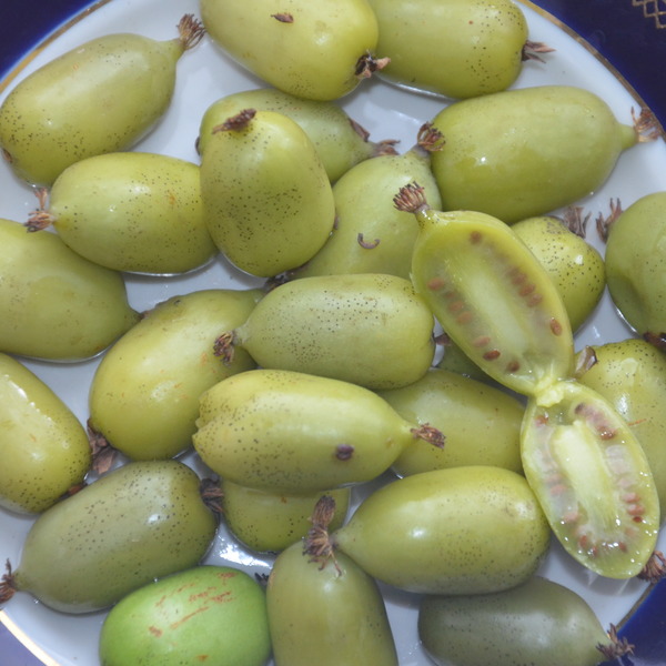 A. arguta Как неутомимая труженица ежегодно одаривает нас щедрым урожаем плодов. Ее ягоды не опадают и крепко держатся на веточках в отличие от ягод актинидии коломикта, которые опадают в процессе созревания. Ягоды актинидии аргута созревают с середины августа по начало октября в зависимости от сорта растений и могут оставаться на побегах до первых заморозков (иногда до декабря). Таким образом, у нас есть возможность лакомиться свежими ягодами актинидии непосредственно с веточек до самой зимы!