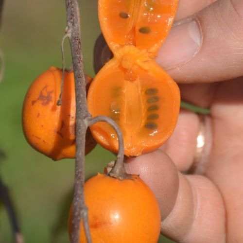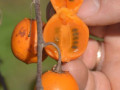 Плоды ярко-оранжевые, отличающиеся богатым содержанием биологически активных веществ, до 10 г, созревают в середине сентября. Очень ароматное растение в лечении онкозаболеваний!