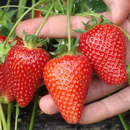 Клубника садовая Ами — ранний, высокоурожайный, высокотоварный, транспортабельный, засухо- и болезнеустойчивый сорт! Ягоды клубники Ами однородные, массой от 35 г, мякоть сочная, ароматная, очень вкусная – с повышенным содержанием сахаров! Плодоножка отделяется легко.