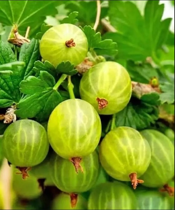 Крыжовник сорта "Княжич" среднеспелый и отмечается для высокой урожайностью. Ягоды весом 4-6 граммов имеют приятный кисло-сладкий вкус, плотную консистенцию и насыщенный аромат, что делает их отличными для свежего потребления, приготовления джемов, компотов и десертов. Растение характеризуется сильной, большой кроной и устойчивостью к основным условиям выращивания, сочетающим продуктивность с декоративностью в саду.