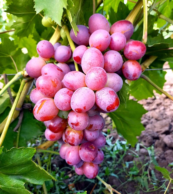 Ранний, высокоурожайный, высокотоварный, транспортабельный и болезнеустойчивый сорт. Гроздь до 1 кг, очень плотная. Ягоды розовые, 14-16 г, хрустящие, сочные, очень гармоничного вкуса. Созревание дружественное. Не горошится.