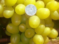 Ягоды крупные, весом 8-10 г, размером 29×15 мм. Форма ягоды овальная. Ягода сочная, мясистая. Окрас кожуры желтый, с розовым оттенком, по консистенции плотный, съедается. Вкус приятный, аромат мускатный.