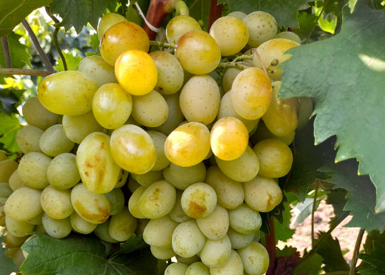Среднепоздний. Выдерживает до -24°С. Гроздь от 770 г, ягода от 9 г кисло-сладкая, кожица не ощущается.