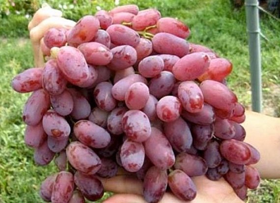 Среднеранний, бескосточковый с крупными гроздьями, болезнеустойчивый, транспортабельный. Отлично сохраняется. Гроздья большие, массой 0,6-1 кг, длиной до 40 см. Ягоды средние (3-5 г), мякоть сладкая, сочная, хрустящая, с повышенным содержанием сахара и мускатными нотками. Шкурочка не ощущается.