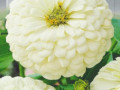 Цинния Полар Бир формирует крепкие, компактные кустики с густыми зелеными листьями, на фоне которых раскрываются крупные махровые цветки чисто-белого цвета. Лепестки плотные и шелковистые, собраны в пышные соцветия, которые долго сохраняют форму и яркость, создавая в саду свежий и праздничный акцент.