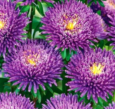 Сорт помпонной астры. Имеет двухцветную соцветия: фиолетовое с желтым центром, диаметром 5-6 см. Куст прочный, колоннообразной формы, высотой до 50 см. Отличный сорт для декора клумб, бордюров и срезки. Цветет – VIII-IX.