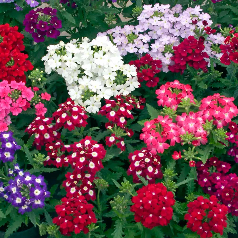 Вербена крупноцветковая микс – незаменимое однолетнее растение для солнечного сада. На высоте 20–25 см образует эффектные цветки гвоздичной формы (до 2,5 см) с чудесным ароматом.