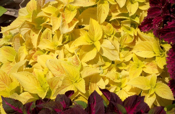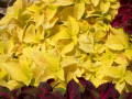 Колеус Визард Голд образует компактные, раскидистые кусты с яркими декоративными листьями. Листья имеют насыщенный зеленый оттенок с насыщенным золотистым узором, что создает эффект сияющего контраста и делает растение особенно привлекательным в любой садовой композиции.