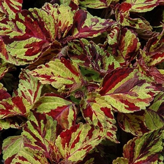 Колеус Визард Мозаик образует компактные, раскидистые кустики с декоративной листвой, сочетающей в себе насыщенные оттенки зеленого, бордового и розового цвета, создающие эффект яркого мозаичного рисунка. Листья плотные, бархатистые, долго сохраняют форму и интенсивность окраски, что делает растение привлекательным акцентом в любой садовой композиции.