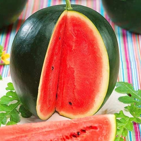 Арбуз Херсонский сахаристый – ранний сорт, формирующий уровни, привлекательные плоды массой около четырех-пяти килограммов с тонкой, но крепкой кожицей и характерным легким восковым налетом. Мякоть у таких арбузов чрезвычайно сладкая, нежная и сочная, с приятной зернистой структурой, дающей ощущение настоящего летнего вкуса. Растение хорошо переносит жару, быстро завязывает плоды и стабильно созревает даже в засушливых районах, сохраняя высокую сахаристость. Сорт отлично подходит для выращивания в открытом грунте, а его ароматные, насыщенно сладкие арбузы станут идеальным выбором для свежего потребления и летних десертов.