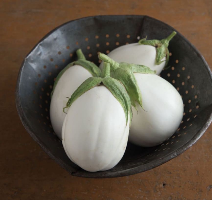 Баклажан "Палома F1" – скороспелый гибрид белых баклажанов, отличающийся кремовой текстурой, приятным грибно-ореховым ароматом, отсутствием горечи. Плоды округло-яйцевидной формы, размером 5-8 см, массой около 200 г. Это высокоурожайный сорт с декоративными кустами, обильно покрытыми белыми плодами и фиолетовыми цветками.