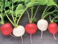 Согласно названию, cerises de bresse, это редис размером с большую вишню. Главная интрига этой смеси – сочетание чистого белого и красного цветов. Неудивительно, что это старый классический фаворит долины Бресса во Франции! Этот редис в своем сочетании дает очень гармоничный вкус – нежность и особое удовольствие белого дополняется насыщенностью и пикантностью красного. Текстура у них свежая, плотная и хрустящая, без резкого перечного привкуса. Эта быстросозревающая смесь (20-25 дней от всходов) благодаря своему происхождению сравнительно долго сохраняется в жаркую погоду. Но для получения редиса высочайшего качества, ее выращивают очень ранней весной, преимущественно в конце лета. Для получения чистоты цвета семена этих двух редисов выращивают в Брессе отдельно друг от друга, смешивая их перед посевом.