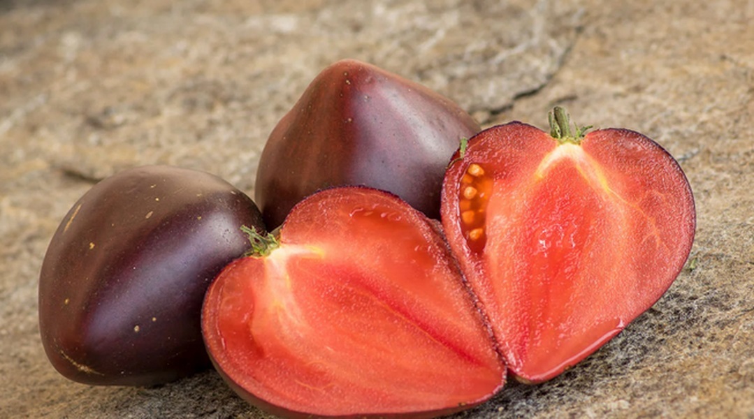 Сорт, который буквально взорвал рынок томатов: крупные малиновые сердечки массой 220-300 г, украшенные антоциановыми пятнами и полосками. Сорт среднеспелый, индетерминантный, высотой 1,4-1,6 м в открытом грунте, выращивается в 2 или 3 стебля, подвязывается. Куст компактный и сильный, высотой до 1,8 м. Мясистый, сочный, ароматный, очень хорошего вкуса, сладкий, с легкой кислинкой и приятным антоциановым послевкусием. Сорт устойчив к болезням, но нуждается в солнечном месте – ведь именно в таком месте плоды будут самыми яркими и вкусными.