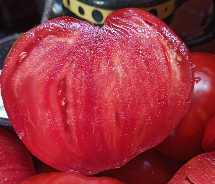 Вам понравится его насыщенный и исключительно сладкий вкус – забудьте о кислых и водянистых помидорах! Плоды сердцевидной формы массой 300-500 грамм впечатляют не только размерами, но и красотой: насыщенный красный цвет дополнен элегантным коричневым цветом и легким антоциановым налетом.