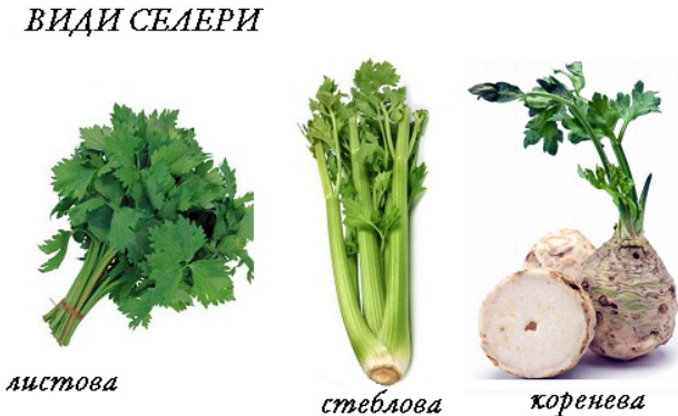 Существует три разновидности сельдерея. Это листовой, черешковый и корневой.