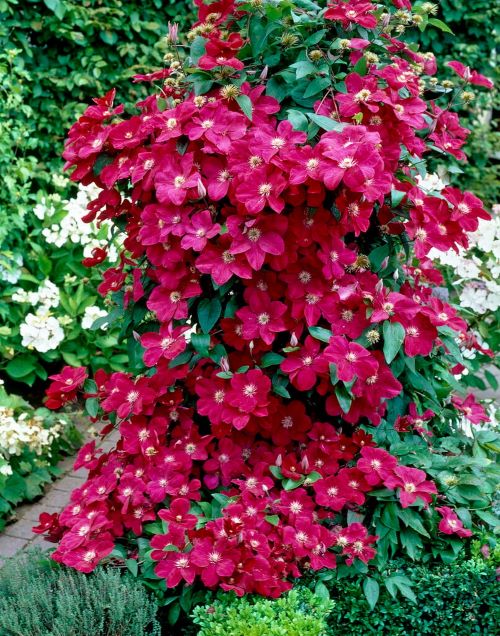 ⌂ Фото: Квіти клематису Ernest Markham в ландшафтному дизайні